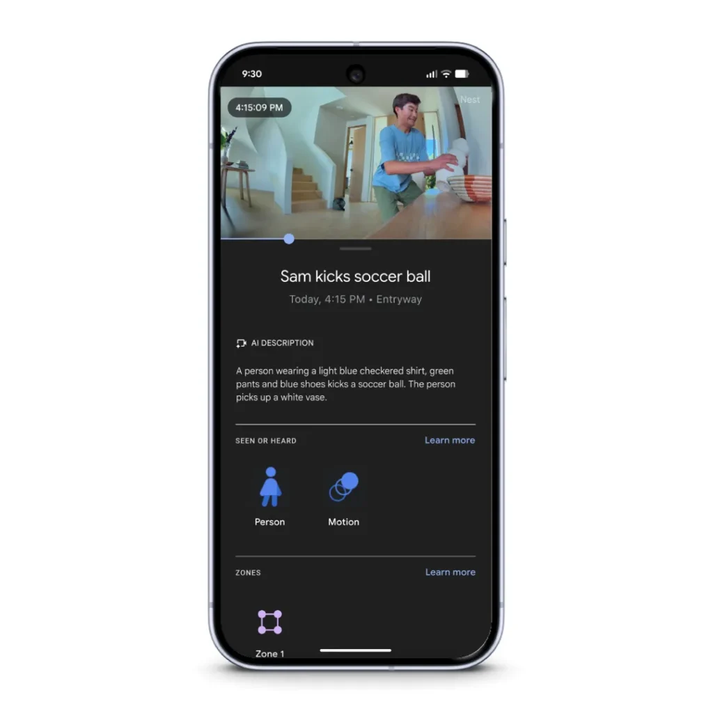 ต่อมาก็คือระบบการควบคุมกล้องที่ดีขึ้นกว่าเดิม เช่น การแสดงภาพพรีวิวแบบเคลื่อนไหวผ่านแจ้งเตือนตั้งแต่บนหน้าจอล็อค สามารถแตะสองครั้งเพื่อกรอวิดีโอไปข้างหน้าหรือย้อนหลังได้เหมือนใน YouTube และการประมวลผลของ Gemini ที่สามารถแยกแยะบุคคลในกล้องได้ว่ากำลังทำอะไรอยู่