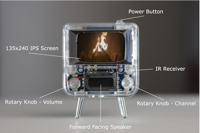 The TinyTV 2 มาพร้อมกับขนาดที่เล็กจิ๋ว 47.6มม. x 36.6 มม. x 25.9 มม. วางไว้บนอุ้งมือได้ มีจอแสดงผลแบบ IPS TFT ขนาด 1 นิ้ว ความละเอียด 216 x 135 pixels ใช้ชิป Raspberry Pi RP2040 ในการทำงาน มาในดีไซน์สี่เหลี่ยมจัตุรัสแบบ Retro เหมือนทีวีในยุคก่อน มีปุ่มหมุนเปลี่ยนช่อง และปรับระดับเสียงเล็ก ๆ ที่สามารถหมุนใช้งานได้จริง และยังมีเซ็นเซอร์อินฟราเรดรองรับสั่งการผ่านรีโมทคอนโทรลด้วย
