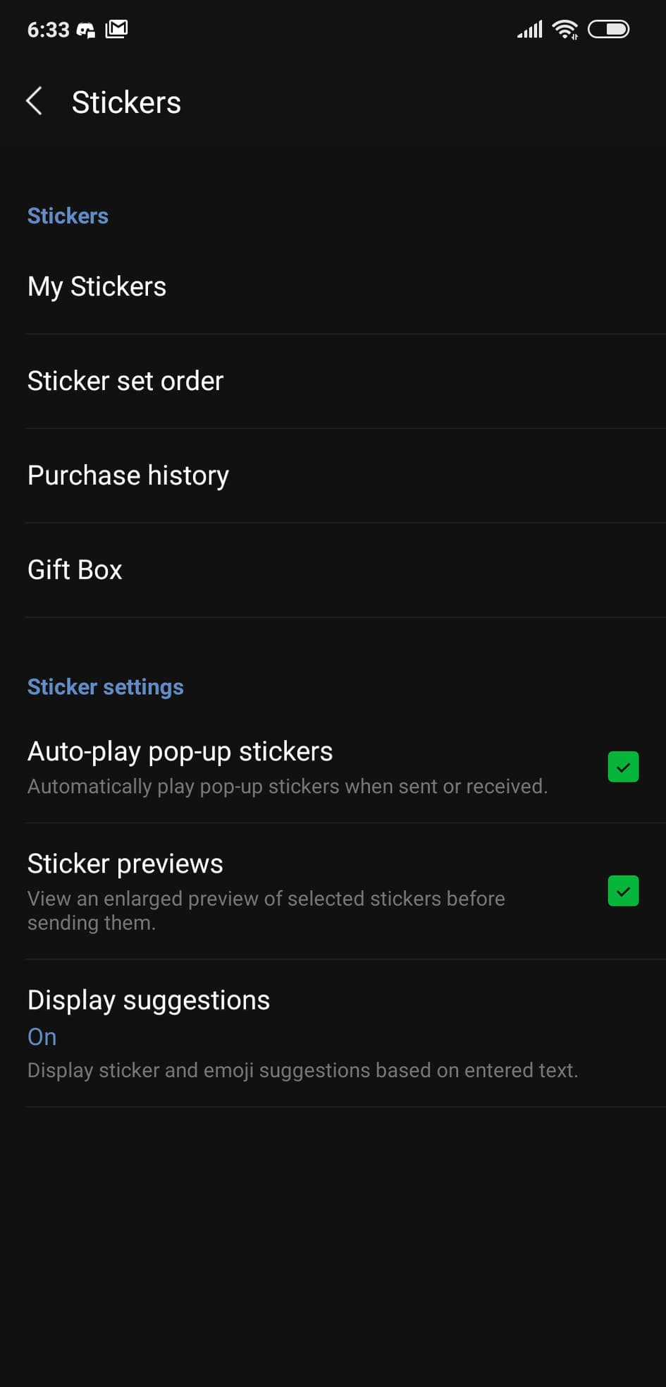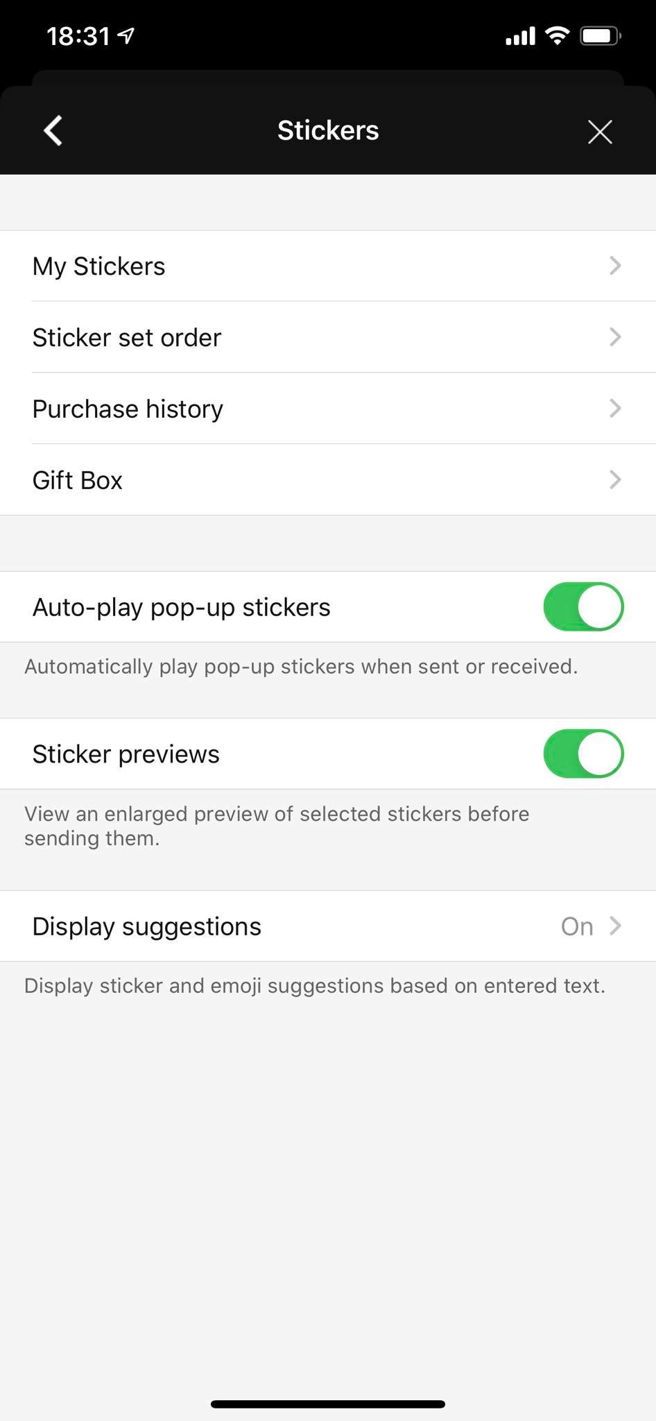 - เลือกเมนู Stickers -> Display Suggestion กดเปิดฟีเจอร์นี้
