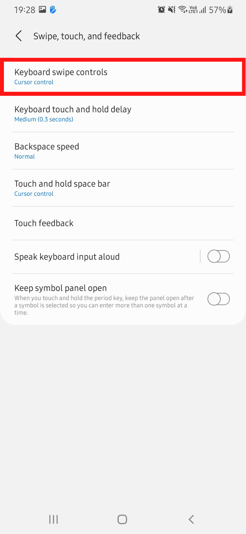 พิมพ์ข้อความยาว ๆ แล้วอยากจะกลับมาลบช่วงแรก ๆ ก็ไม่ต้องเล็งให้ดีแล้วจิ้มให้ถูกอีกแล้ว กับฟีเจอร์ Cursor control ที่ทำให้เราเลื่อนนิ้วบนคีย์บอร์ดแทน Cursor ได้เลย วิธีการเปิดฟีเจอร์นี้คือ กดไปที่รูปเฟืองบนคีย์บอร์ด เลือกเมนู Swipe, touch, and feedback และไปที่เมนู Keyboard swipe controls จากนั้นเลือกที่ Cursor control เพียงแค่นี้ก็จะสามารถใช้งานฟีเจอร์แสนสะดวกนี้ได้แล้ว แต่ต้องบอกไว้ก่อนว่าหากจะใช้ Cursor control ก็จะไม่สามรถใช้ Swipe to type ได้นะ จะต้องเลือกใช้แค่ทีละฟีเจอร์เท่านั้น