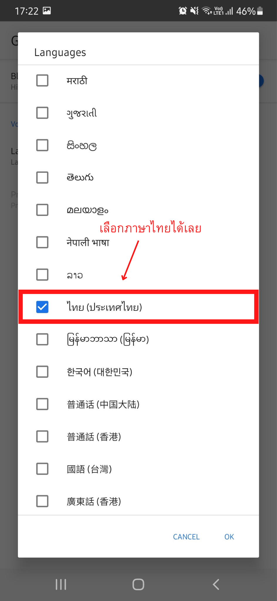 หรือหากว่า Google voice typing ของใครใช้ภาษาไทยไม่ได้ ก็ลองไปตั้งค่าตามขั้นตอนต่อไปนี้เลย
