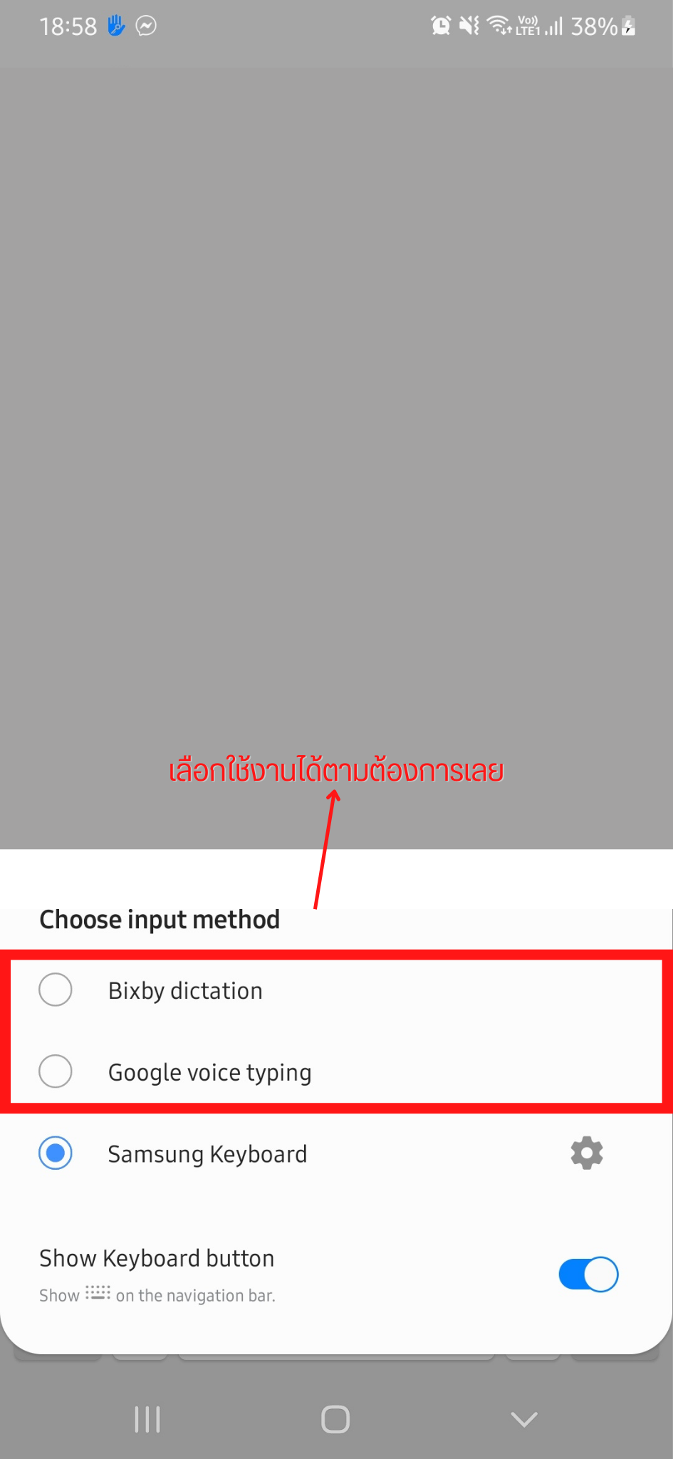 หากใครขี้เกียจหรือไม่สะดวกในการพิมพ์ Samsung Keyboard ก็สามารถพิมพ์ด้วยเสียงได้ด้วยนะ ซึ่งจะทำให้การพิมพ์ข้อความยาว ๆ เป็นเรื่องง่ายขึ้นมาเลยล่ะ วิธีการก็คือไปที่รูปคีย์บอร์ดด้านขวาล่าง จากนั้นก็กดเลือกได้เลยว่าใช้ Google voice typing ที่รองรับการพูดเพื่อพิมพ์ภาษาไทยได้ หรือว่าจะใช้ Bixby dication ก็ได้นะ แต่ต้องบอกก่อนว่า Bixby dication ไม่รองรับภาษาไทยนะ