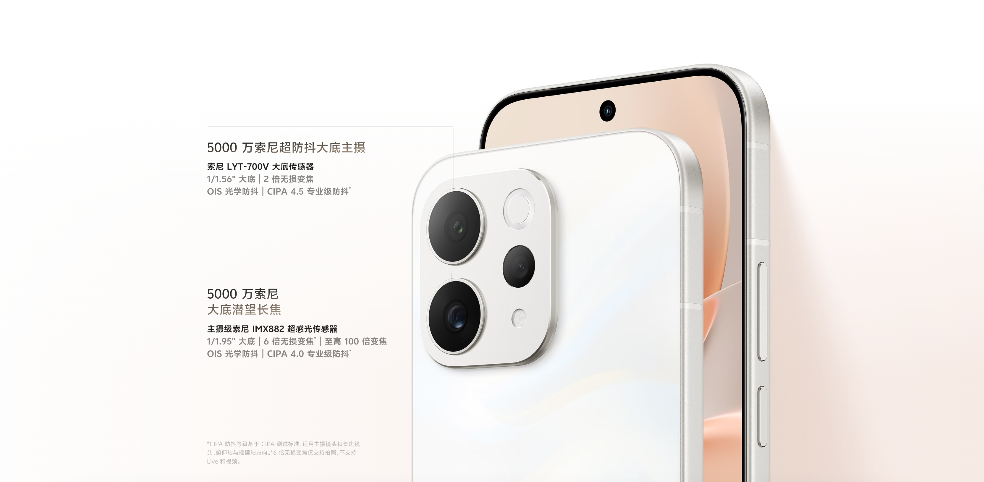 - กล้องหลัก Sony LYT-700V ความละเอียด 50MP (f/1.88) ขนาด 1/1.56 นิ้ว ออโต้โฟกัส และระบบกันสั่น OIS (CIPA 4.5)