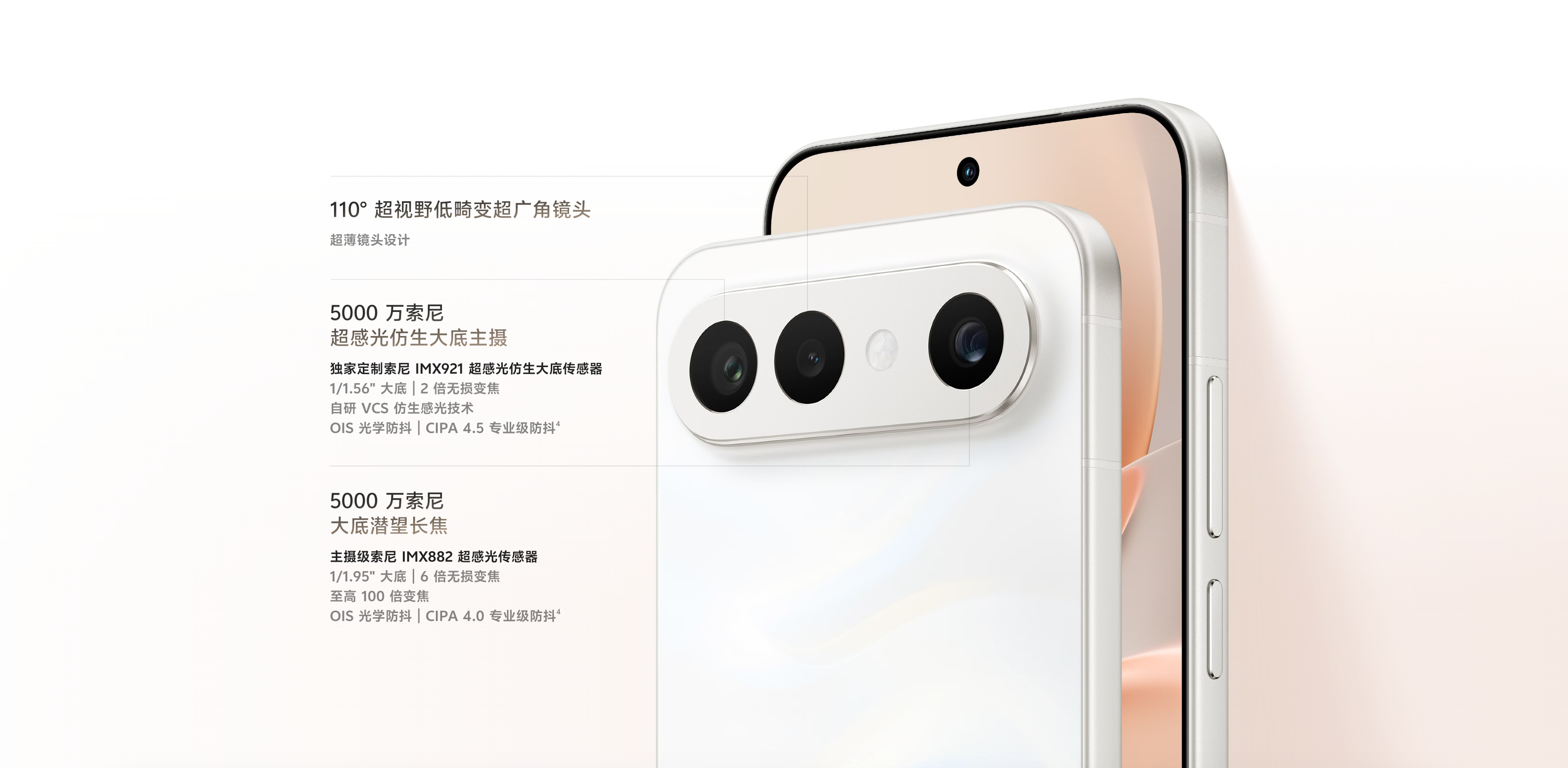 - กล้องเทเลโฟโต้ปริทรรศน์ Sony IMX882 ความละเอียด 50MP (f/2.65) ขนาด 1/1.95 นิ้ว ออโต้โฟกัส และกันสั่น OIS (CIPA 4.0)