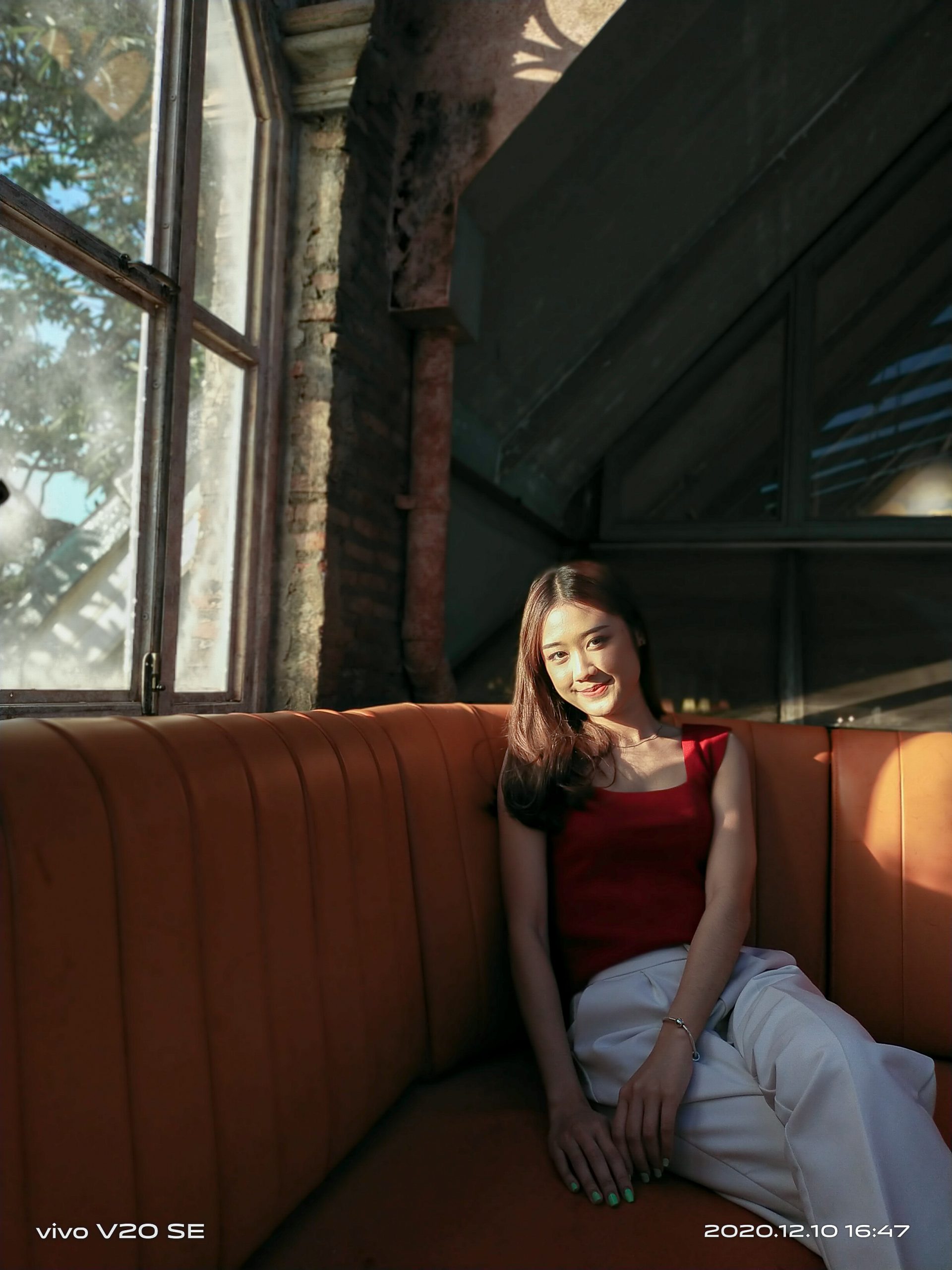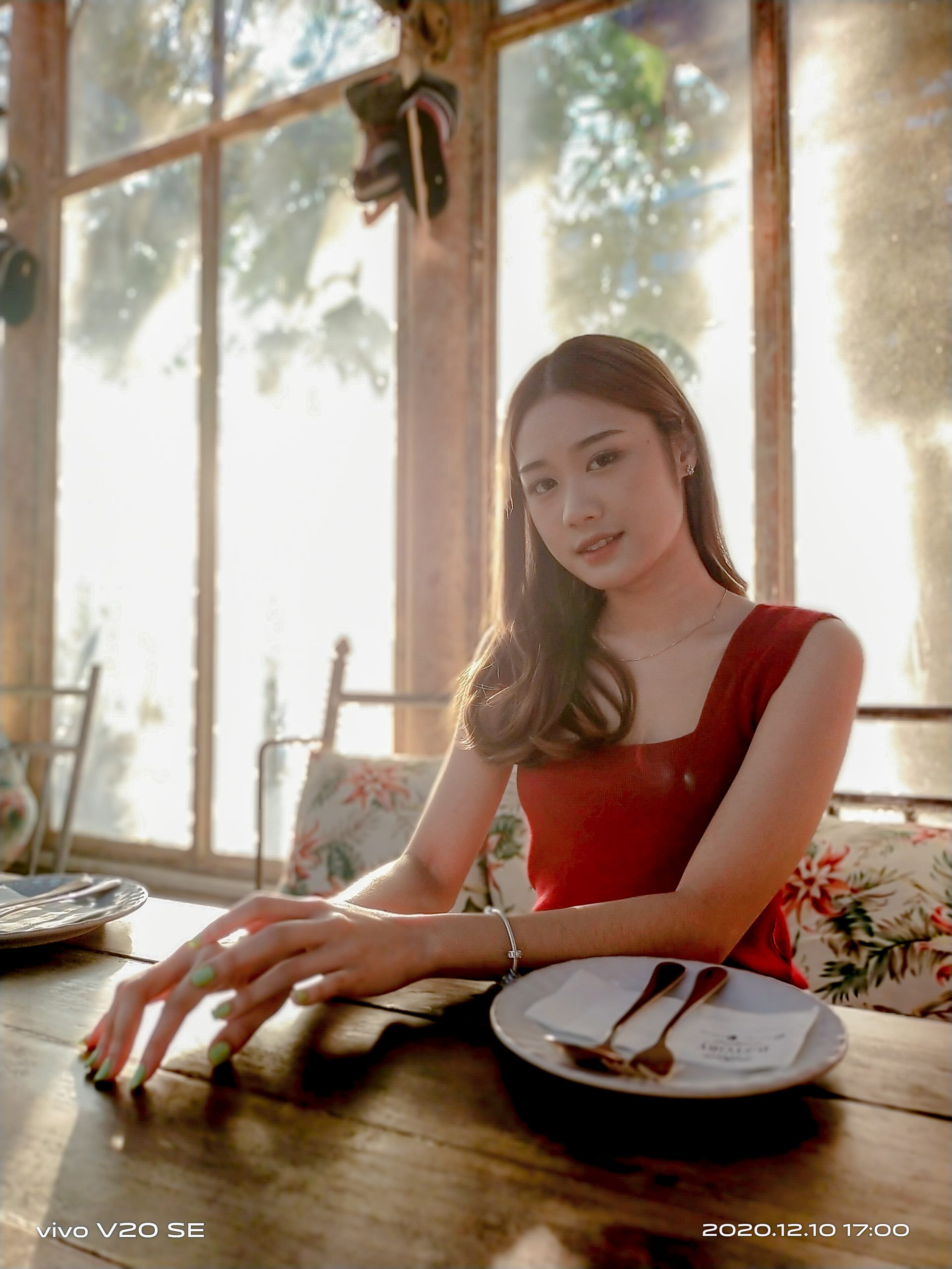 แม้ว่าสถานที่ถ่ายรูปจะมีการตกแต่งที่สวยงามละมุนละไม แต่เวลาเอาลงโซเชียล จะลงภาพชุดเดียวแบบเดียวกันซ้ำๆ ไม่ได้ มันต้องมีภาพหน้าชัดหลังเบลอสวยๆ ลงไปคละๆ กันบ้าง ซึ่งจากที่ลองไปเอาถ่ายรูป Vivo V20 SE ก็ถ่ายออกมาดีจริง ดีงาม