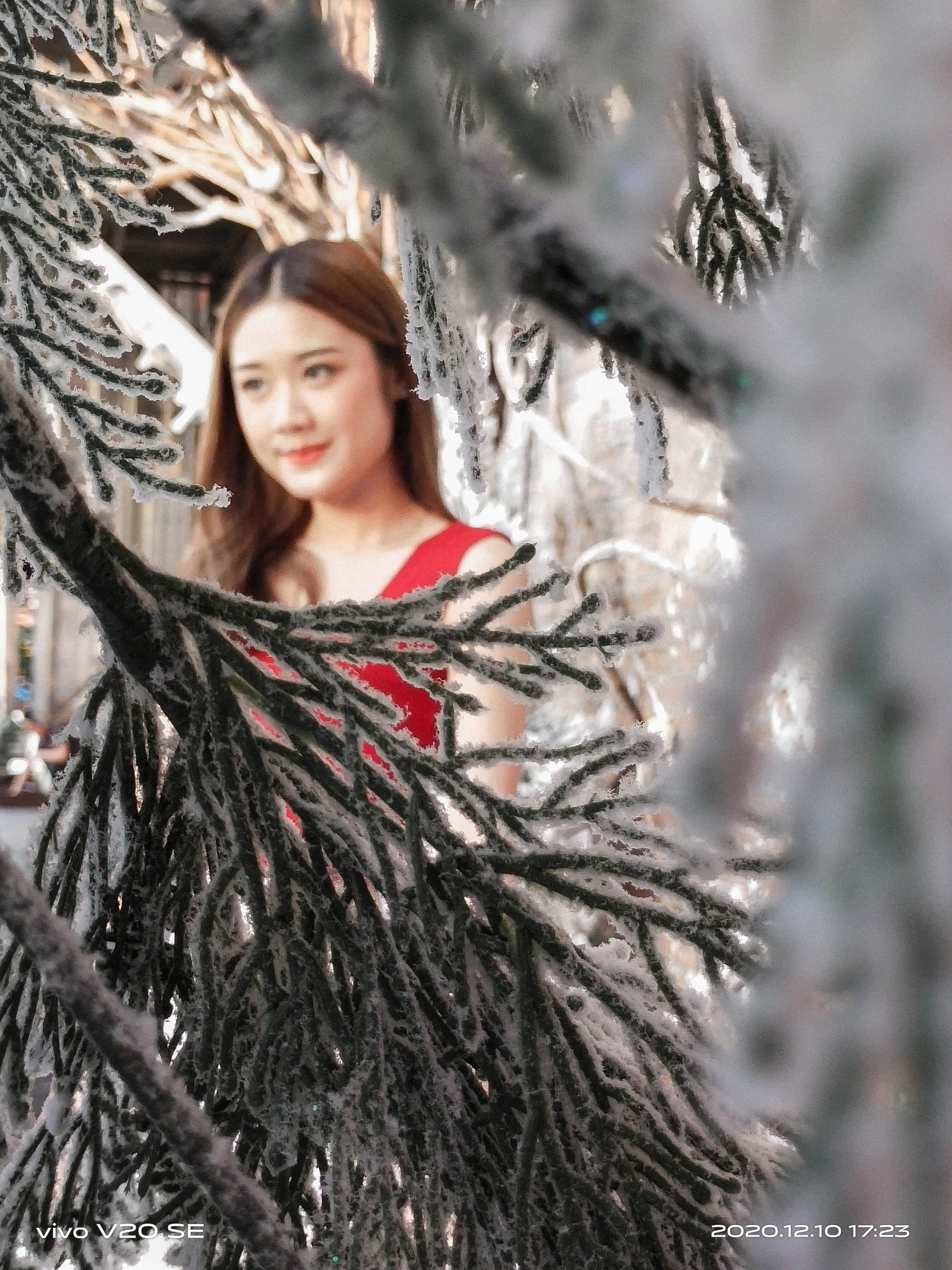 พักหลังๆ จะเห็นว่าภาพ Close-Up เริ่มกลับมาฮิตอีกครั้งแล้ว เห็นเกลื่อนตามสตอรี่ไอจีเลย แน่นอนว่าเทศกาลคริสต์มาสนี้ ภาพแบบนี้ถ่ายยังไงก็สวย ถ่ายต้นไม้ ถ่ายหิมะปลอม เก็บดีเทลรายละเอียดเล็กๆ อัปลงไอจี มินิมอลแบบสุดๆ ซึ่ง Vivo V20 SE ก็มีกล้อง Macro ความละเอียด 2 ล้านพิกเซลใส่มาให้