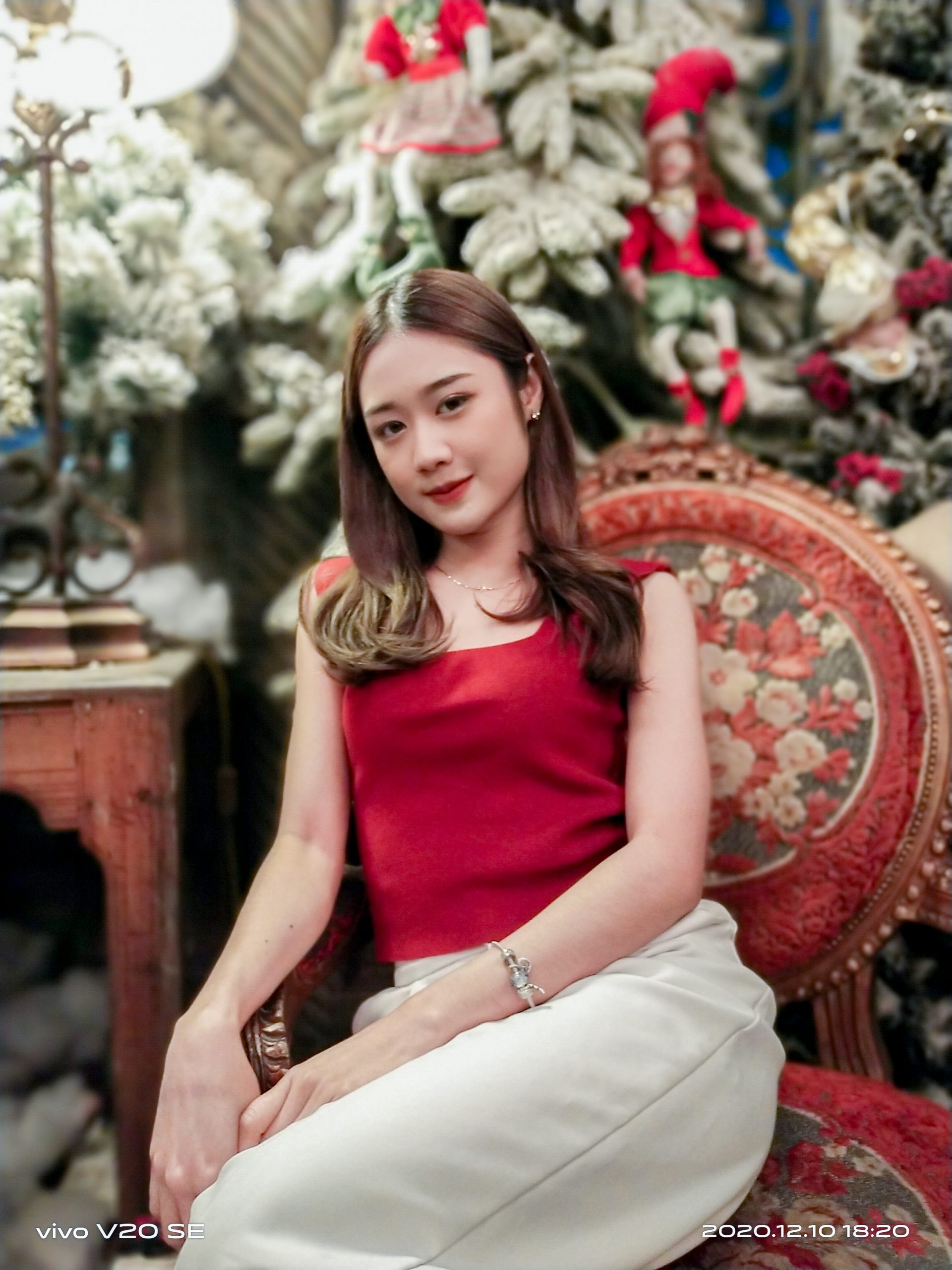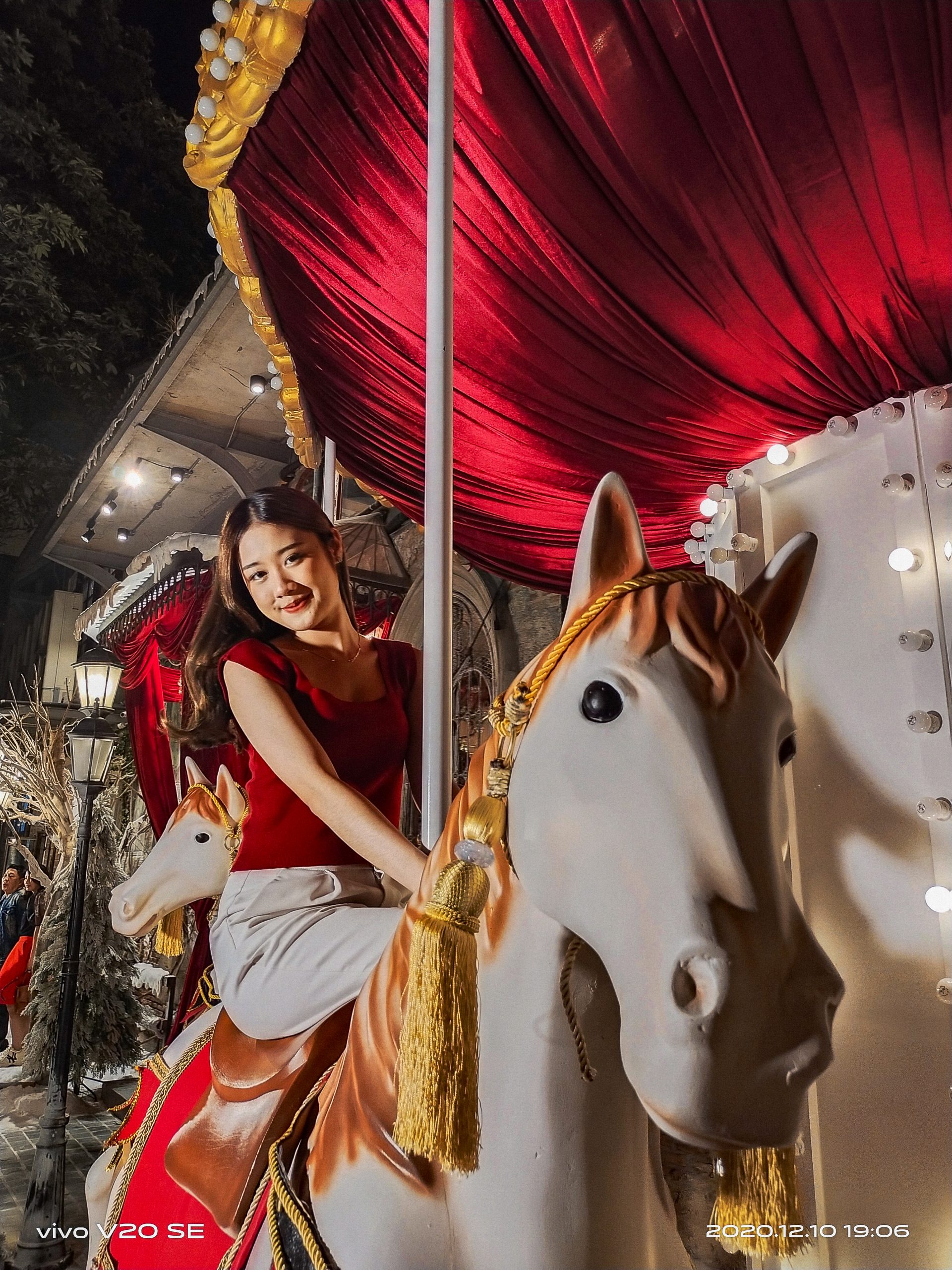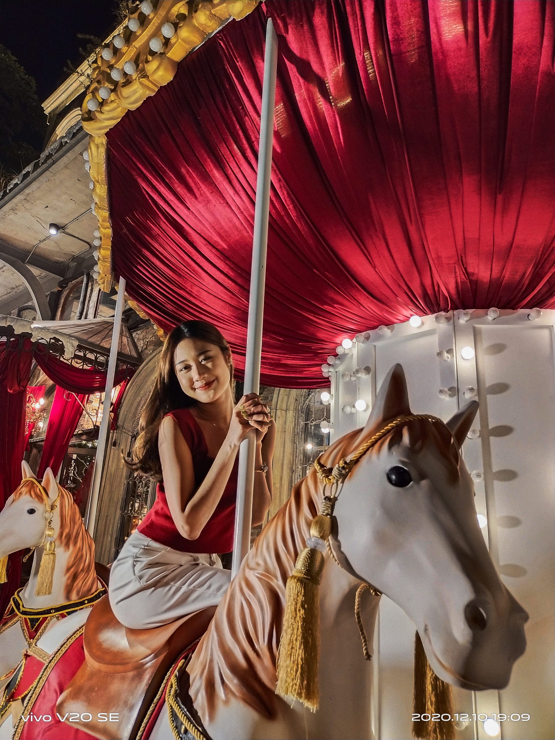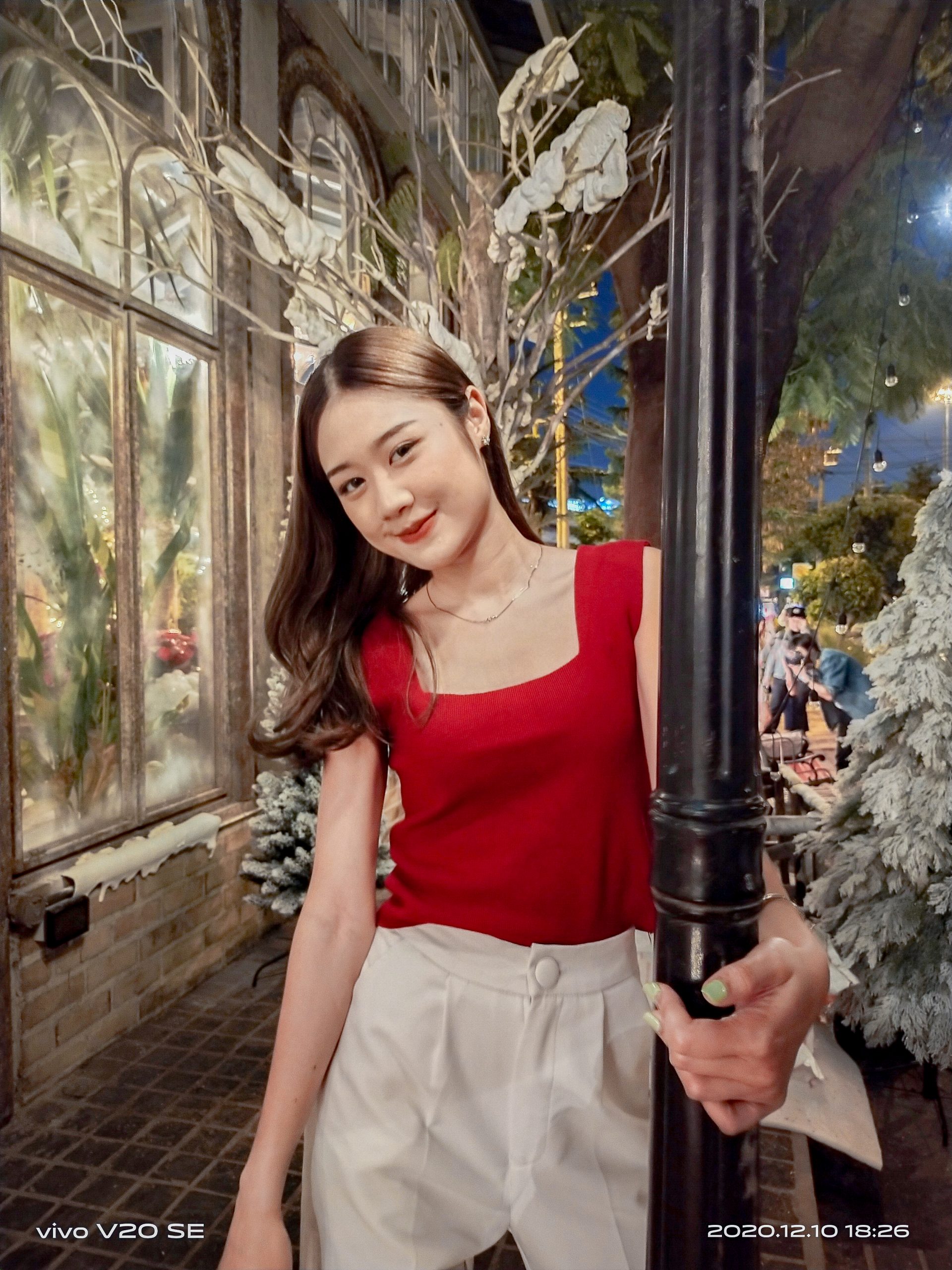 โดยภาพที่ได้จากฟีเจอร์ Super Night Mode ของ Vivo V20 SE มันจะไม่ได้แบบเร่งแสงจนดูเกินจริง แต่จะคงไว้ซึ่งความสมจริงเอาไว้ ซึ่งสังเกตจากภาพตัวอย่างได้ว่าสภาพรอบๆ ไม่ได้ถึงขนาดเหลืองหรือเขียวไปเลย หน้านางแบบก็ยังดูเป็นธรรมชาติอยู่ อันนี้เหมาะมาก เพราะเอาจริงสถานที่ถ่ายรูปเทศกาลช่วงนี้ส่วนมากก็ตอนกลางคืนอะเนอะ