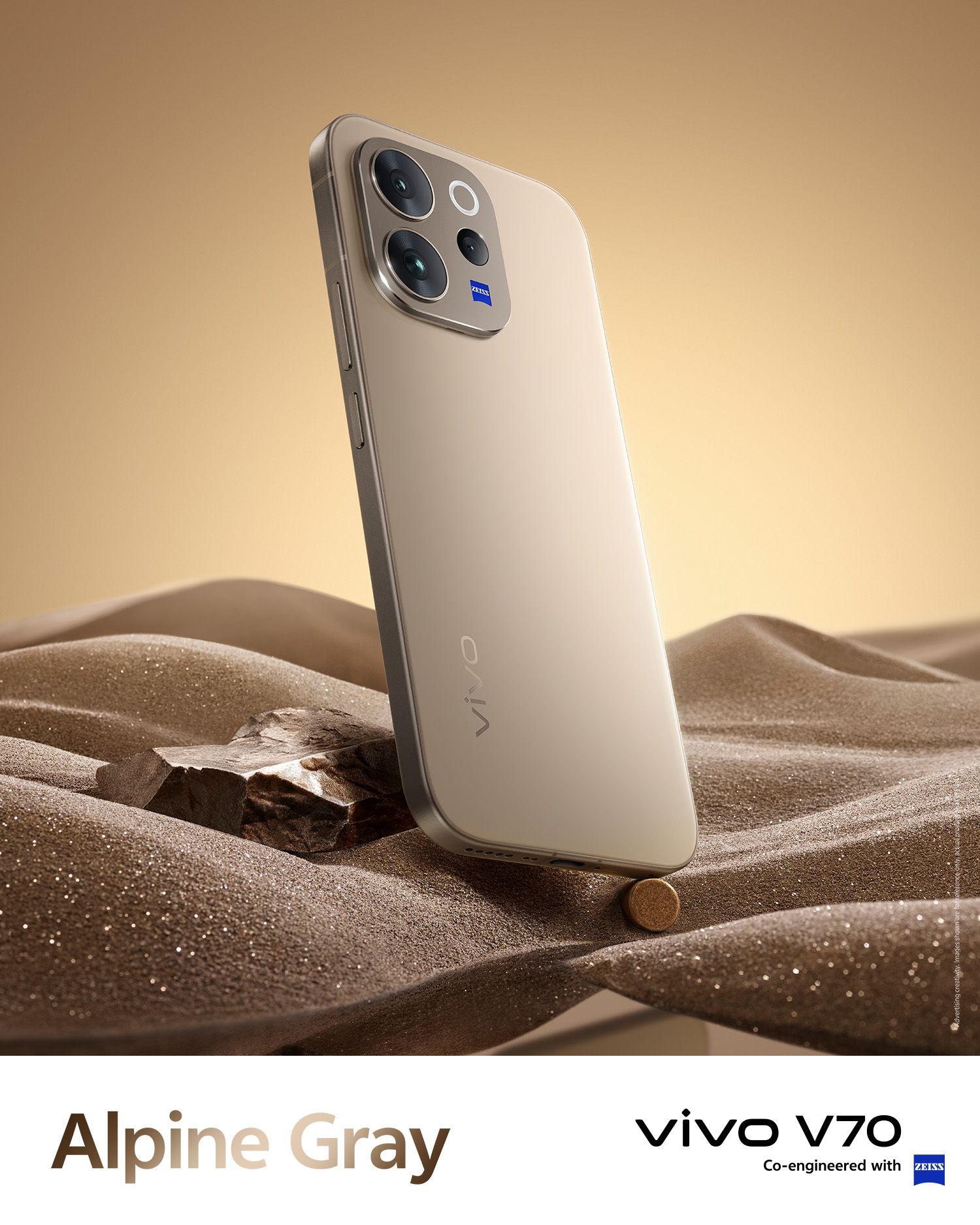 โมดูลกล้องทรงสี่เหลี่ยมมุมโค้งมน มีโลโก้ ZEISS จับคู่กับเลนส์กล้องทั้งสามตัวครบชุดพร้อมใช้งาน vivo ตั้งสโลแกนของ vivo V70 เอาไว้ว่า “เสกช็อตลูกรักพระเจ้า” แสดงให้เห็นว่าการถ่ายรูปยังจัดเต็มเหมือนเดิม และอาจมีการพัฒนาให้ดีกว่าเดิมด้วย !