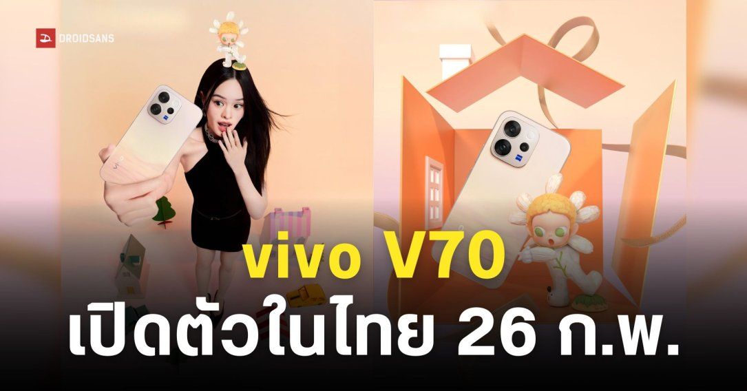 vivo เตรียมเปิดตัว vivo V70 ในประเทศไทย 26 ก.พ. 69 สมาร์ตโฟนกล้องเลนส์ ZEISS พร้อมจับมือกับ POP MART ZSIGA เสิร์ฟไอเทมสุดน่ารักสำหรับสายสะสมที่ไม่ควรพลาด พรีออเดอร์วันนี้รับของแถมสุดพิเศษไปเลย !