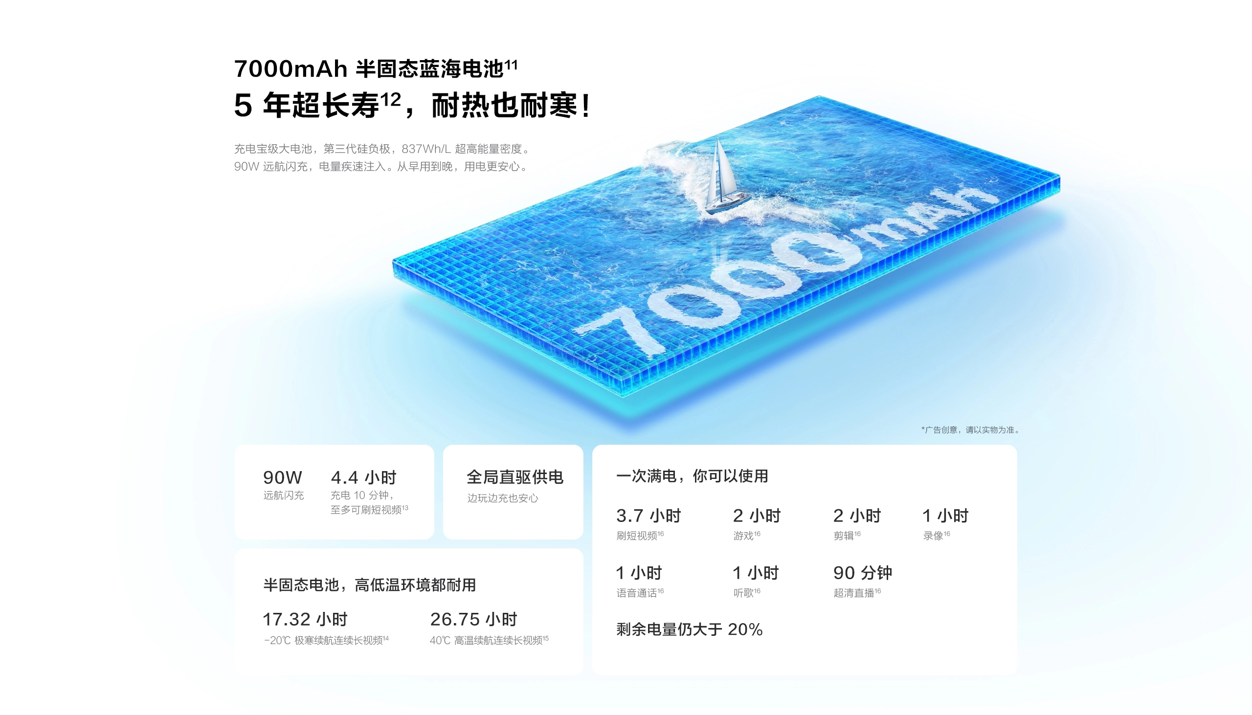 แบตเตอรี่ของ vivo Y500 Pro มีความจุอยู่ที่ 7,000mAh ที่สามารถสแตนด์บายได้นานถึง 14 วัน รองรับความเร็วการชาร์จ 90W ด้วยการชาร์จเพียงแค่ 10 นาที ก็สามารถใช้งานต่อได้นานถึง 4.4 ชั่วโมง จับคู่กับชิป MediaTek Dimensity 7400 ขนาด 4 นาโนเมตร