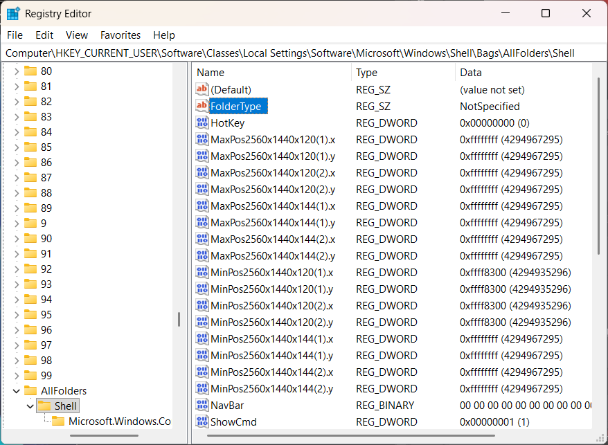 - HKEY_CURRENT_USER\Software\Classes\Local Settings\Software\Microsoft\Windows\Shell\Bags\AllFolders\Shell