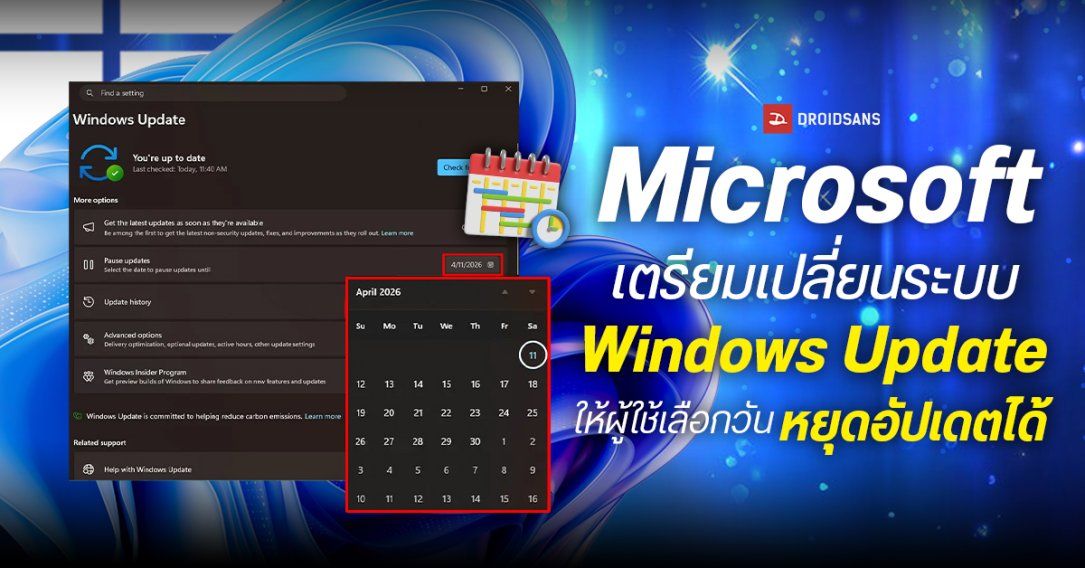 แต่ในปี 2026 นี้ Microsoft เริ่มปรับทิศทางใหม่ โดยใน Windows 11 เวอร์ชันทดสอบล่าสุด (Preview Build) มีการค้นพบฟีเจอร์ควบคุม Windows Update รูปแบบใหม่ ที่เปลี่ยนจากการ “หยุดอัปเดตได้สูงสุด 5 สัปดาห์” ไปเป็นระบบเลือกวันผ่านปฏิทิน เพื่อกำหนดได้เองว่าจะให้ระบบกลับมาอัปเดตเมื่อใด