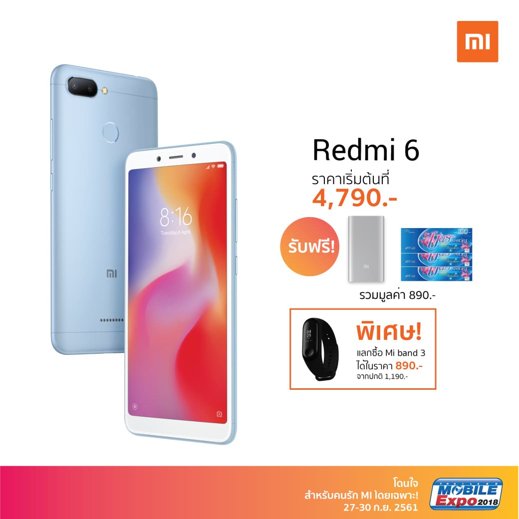 - Redmi 6 แถมเพิ่ม voucher ของ Lotus มูลค่า 300 บาท รวมของแถมทั้งหมด มูลค่า 890 บาท