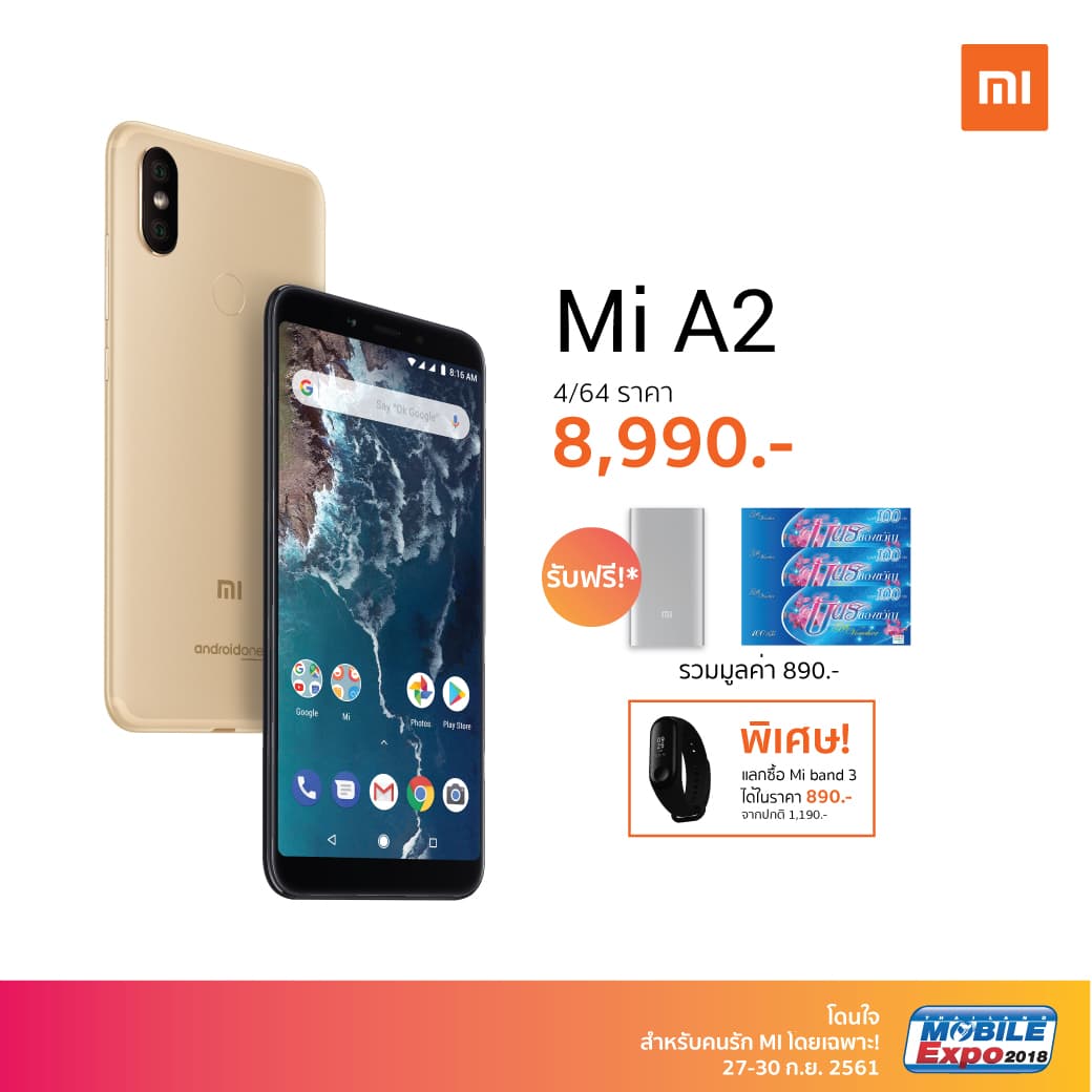 - Mi A2 แถมเพิ่ม voucher ของ Lotus มูลค่า 300 บาท รวมของแถมทั้งหมด มูลค่า 890 บาท