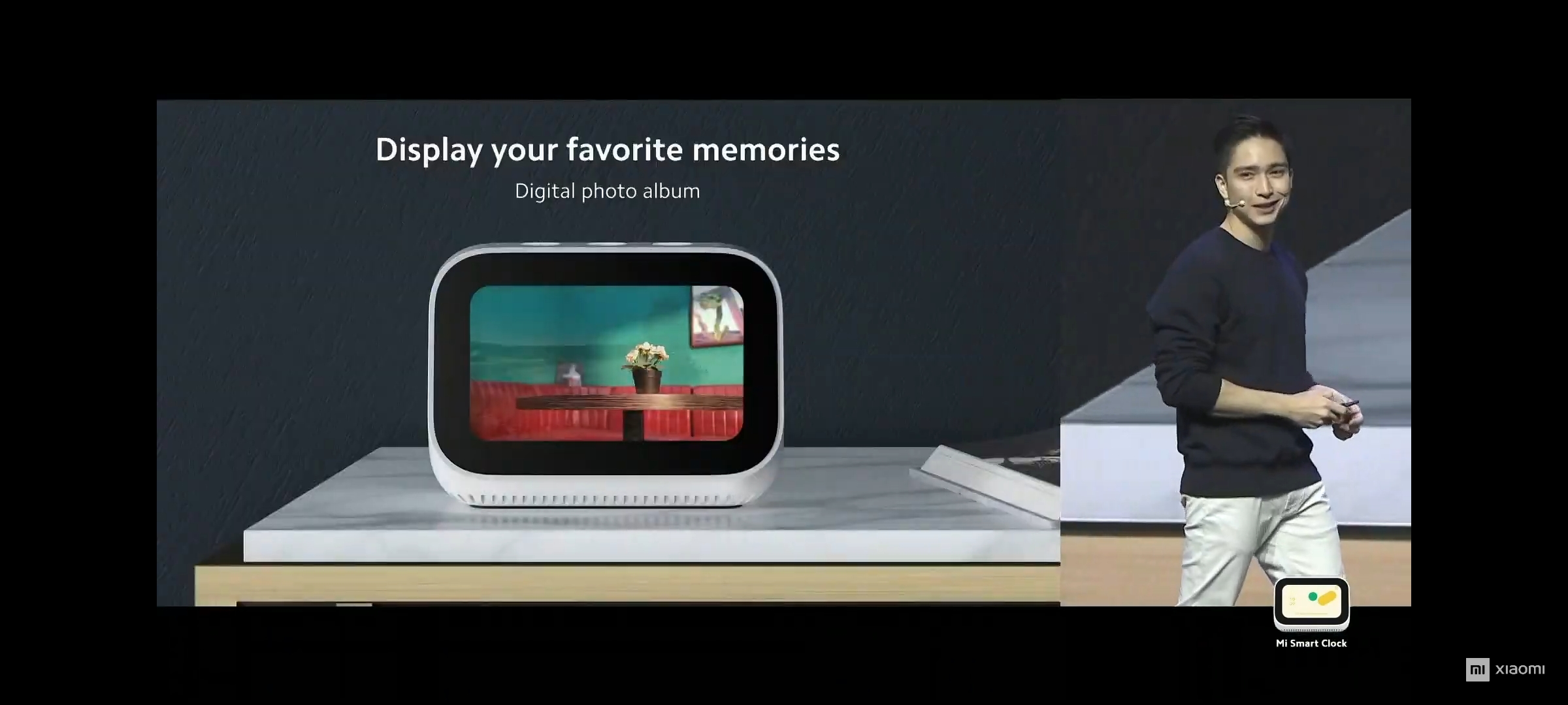 ต่อด้วยนาฬิกาอัจฉริยะ Mi Smart Clock ที่มาพร้อมหน้าจอสีแบบสัมผัส ขนาด 3.97 นิ้ว สามารถใช้งานด้วยการปัดเลื่อนไปมา, ตั้งค่าให้แสดงภาพที่เราต้องการได้เหมือนกรอบรูปดิจิตอล และยังสั่งงานด้วยคำสั่งเสียงผ่าน Google Assistant เพื่อบอกเวลา, สภาพอากาศ, ตั้งเวลาปลุก หรืออื่น ๆ ได้