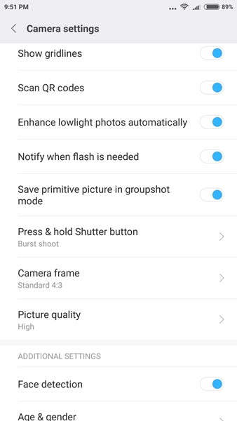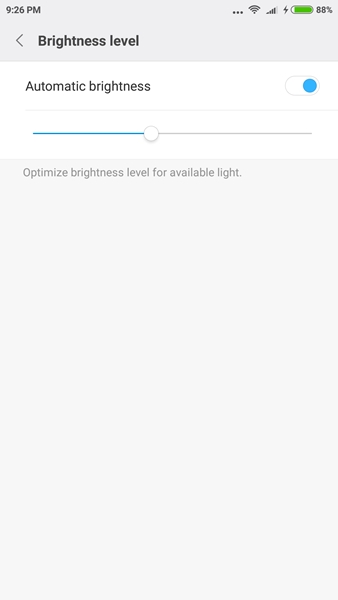 สำหรับส่วนของไฟแจ้งเตือน (Notification light) เราสามารถเลือกปรับได้ 2 อย่างคือ จะให้สว่างตอนชาร์จมือถือหรือไม่ และ จะให้กระพริบตอนมีข้อความแจ้งเตือนหรือไม่ สำหรับรุ่นนี้ปรับสีของไฟแจ้งเตือนไม่ได้เหมือนกับรุ่นล่างๆ เช่น Redmi 4A ที่ปรับได้ 7 สีเลย