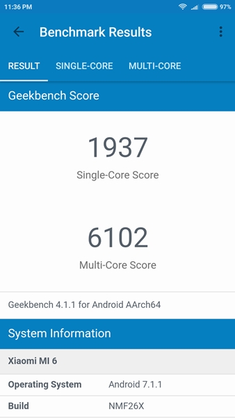 Mi 6 มาพร้อมกับระบบปฏิบัติการ MIUI 8.2 Global version ที่ทำงานอยู่บน Android 7.1.1 Nougat ถือเป็นเวอร์ชันเกือบล่าสุดแล้วเนื่องจาก Google เพิ่งเปิดตัว Android 8.0 Oreo อย่างเป็นทางการไปไม่นาน ในส่วนของ Security update ตอนที่รีวิวยังเป็นของเดือนพฤษภาคมอยู่ ถือว่าไม่ใหม่มาก ส่วนเรื่องการอัพเดตซอฟต์แวร์นั้นก็มีมาเรื่อยๆตามสไตล์ของ MIUI