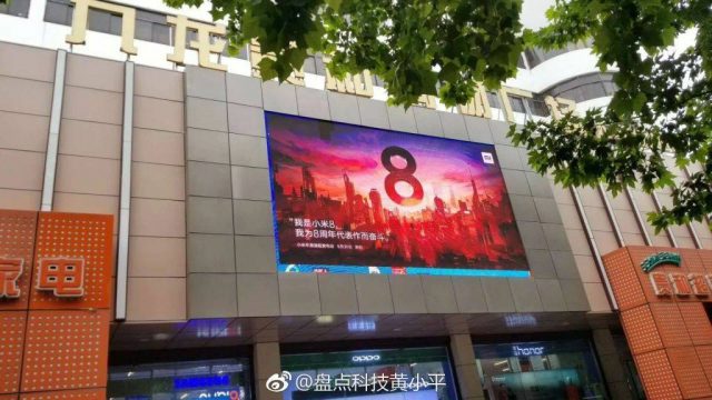 นอกจากที่ Xiaomi จะออกมาประกาศวันเปิดตัวใน Weibo แล้ว ตอนนี้ก็มีการขึ้นป้ายโฆษณาตามบิลบอร์ดต่างๆ รวมถึงหน้าจอโฆษณาตามห้างร้านก็ขึ้นป้ายงานวันเปิดตัว Mi 8 เช่นเดียวกัน