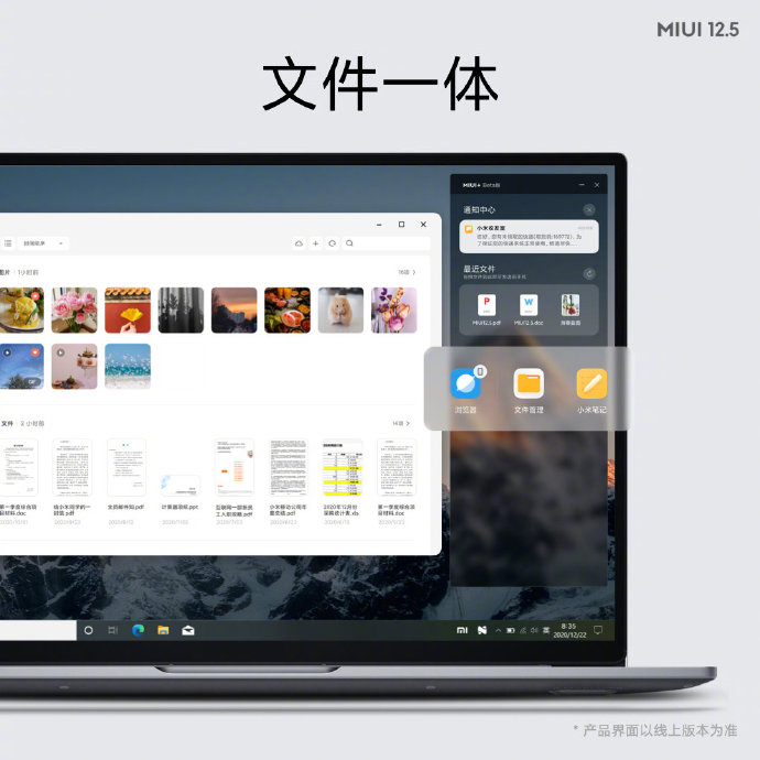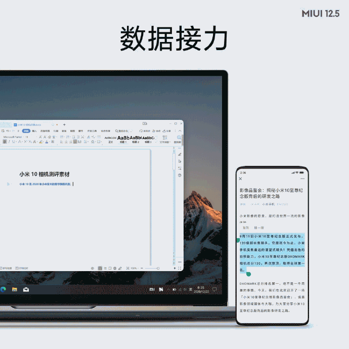 ใน MIUI 12.5 ผู้ใช้งานสามารถใช้งานมือถือ และสั่งงานได้อย่างอิสระ ผ่านหน้าจอโน้ตบุ๊คด้วยแอป MIUI+ ที่รองรับการทำงานข้ามแพลตฟอร์มกับระบบปฏิบัติการ Windows ทำให้เราสามารถดูหน้าจอมือถือ หรือจะสั่งงานจากหน้าจอโน้ตบุ๊คได้เลย