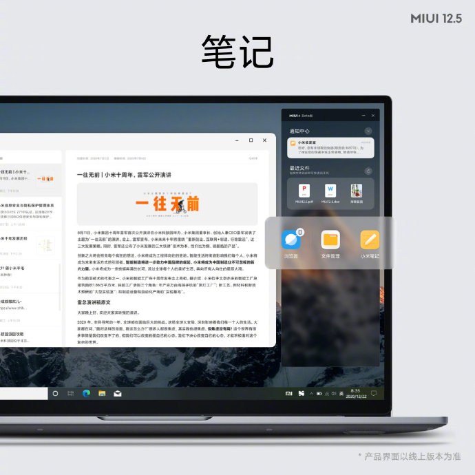 Xiaomi ไม่ได้เปิดตัวแค่ Mi 11 5G สมาร์ทโฟนชิป Snapdragon 888 รุ่นแรกของโลก แต่ยังได้เปิดตัว MIUI 12.5 ที่มีการปรับปรุงระบบใหม่เพิ่มประสิทธิภาพมากขึ้น ทั้งลดการใช้งาน RAM ลงไป 20%, เพิ่ม Super Wallpaper ที่แสงและเงาเปลี่ยนไปตามเวลาจริง, Privacy ที่ปลอดภัยมากขึ้น, ฟีเจอร์ใหม่ในแอป Note และที่เจ๋งก็คือ MIUI+ ที่จะทำให้เราสามารถใช้งานมือถือผ่านหน้าจอคอมพิวเตอร์ระบบ Windows ได้อีกด้วย