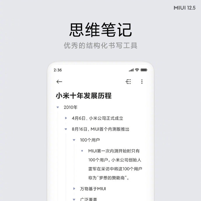 ปกติแล้วแอป Notes ที่ติดมากับระบบของมือถือ Xiaomi ทุกเครื่องจะใช้สำหรับจดบันทึกข้อมูลต่าง ๆ ที่เราต้องการ แต่ใน MIUI 12.5 ได้มีการอัปเกรดใหม่ให้สามารถทำงานได้มากกว่านั้น ไม่ว่าจะเป็นการทำ Mind Map, เพิ่มอุปกรณ์วาดเขียน 4 แบบ และการรองรับวาดภาพด้วยนิ้วมือ แถมยังลากและวางข้อมูลได้อย่างอิสระ รวมไปถึงการนำลิงค์ข้อความ หรือ รูปภาพมาใช้งานได้ ทำให้จัดการข้อมูลต่าง ๆ ได้ดี และใช้งานได้ง่ายขึ้น โดยแอป Notes จะถูกเปลี่ยนชื่อเป็น MIUI Notes