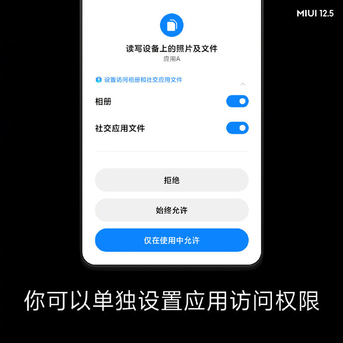 ครั้งนี้ MIUI 12.5 ได้นำกลไก Sandbox มาใช้แยกชั้นไฟล์ หรือ ข้อมูลความเป็นส่วนตัวทั้งหลายที่อาจจะมีความละเอียดอ่อน ให้แอปต่าง ๆ ต้องทำการร้องขอสิทธิ์เพิ่มเติมเพื่อเข้าถึงการอ่านข้อมูล โดยจะต้องได้รับการยินยอมจากผู้ใช้งานก่อนถึงจะสามารถใช้งานได้