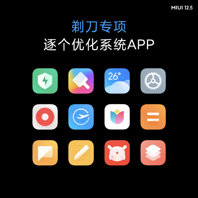 ส่วน Bloatware อื่น ๆ ที่ยังคงมีอยู่จะถูกปรับขนาดให้เล็กลง และสามารถถอนการติดตั้งออกจากระบบได้ด้วย นอกจากนี้ MIUI 12.5 ยังได้ใช้สถาปัตยกรรมไดนามิกเข้ามาช่วยเพิ่มประสิทธิภาพ UI ในการแสดงเอฟเฟกต์เคลื่อนไหว ทำให้การทำงานต่าง ๆ ของระบบมีความลื่นไหล และตอบสนองได้รวดเร็วขึ้น