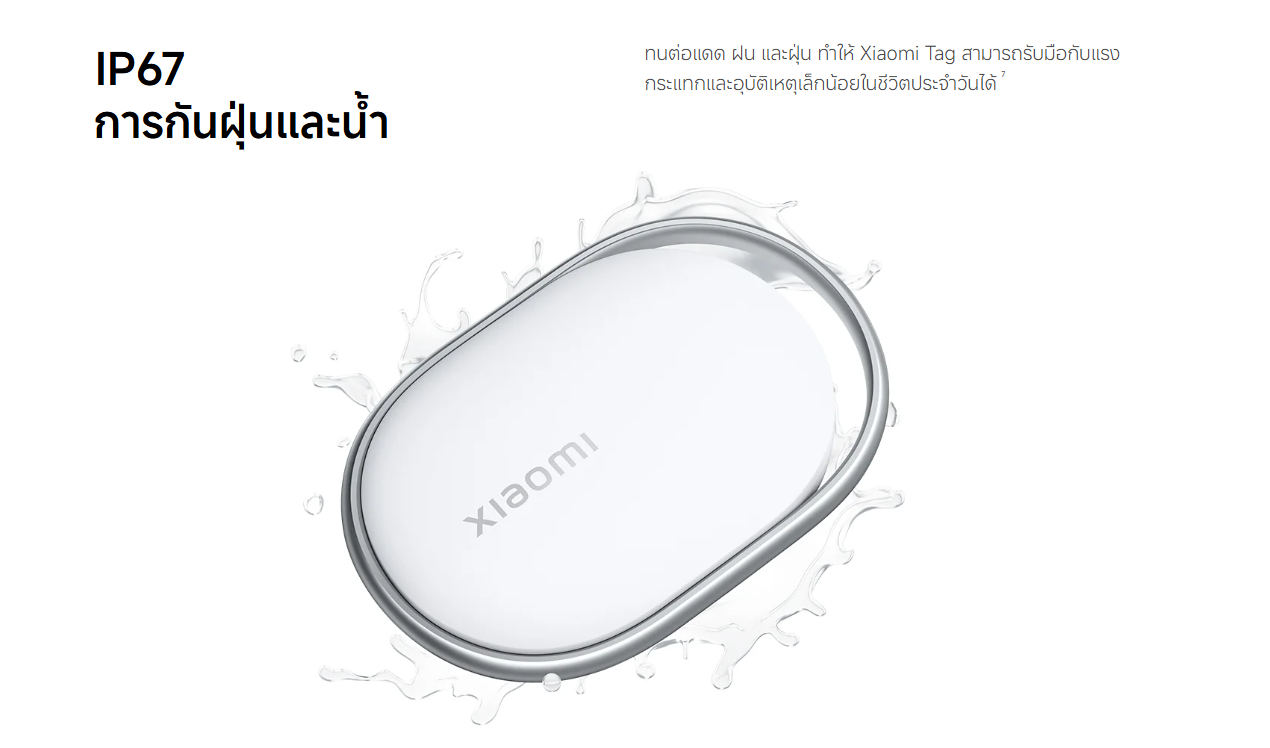 Xiaomi Tag มาพร้อมกับดีไซน์มินิมอลสุดพรีเมียม โดยมีน้ำหนักเบาแค่ 10 กรัม มาตรฐานการทนน้ำทนฝุ่น IP67 นอกจากนั้นยังทนต่อแดดกลางแจ้งในวันที่อุณหภูมิสูงอีกด้วย