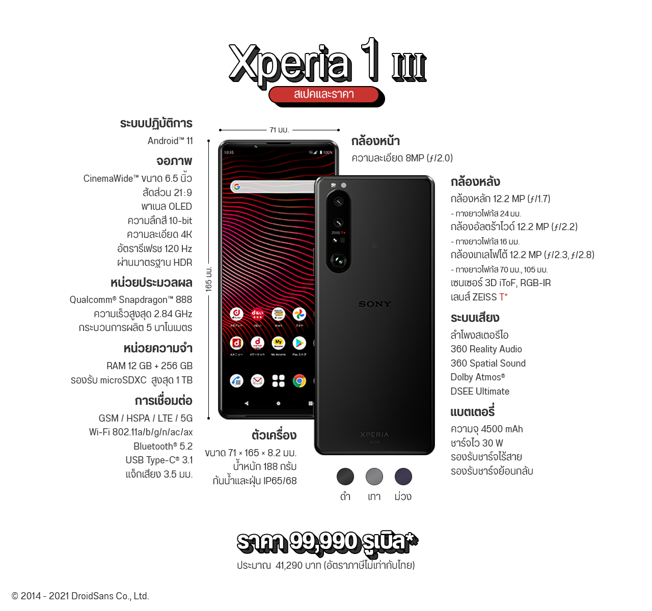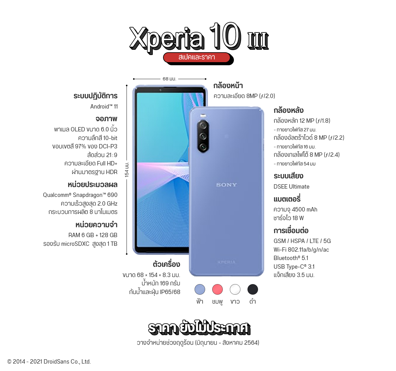 สำหรับราคาและวันวางจำหน่ายยังไม่มีการประกาศออกมาจากโซนี่ประเทศไทย ในระหว่างนี้เพื่อน ๆ สามารถทบทวนจุดเด่นและฟีเจอร์ของ Xperia 1 III กับ Xperia 10 III ไปพลาง ๆ ก่อนได้ที่ด้านล่าง
