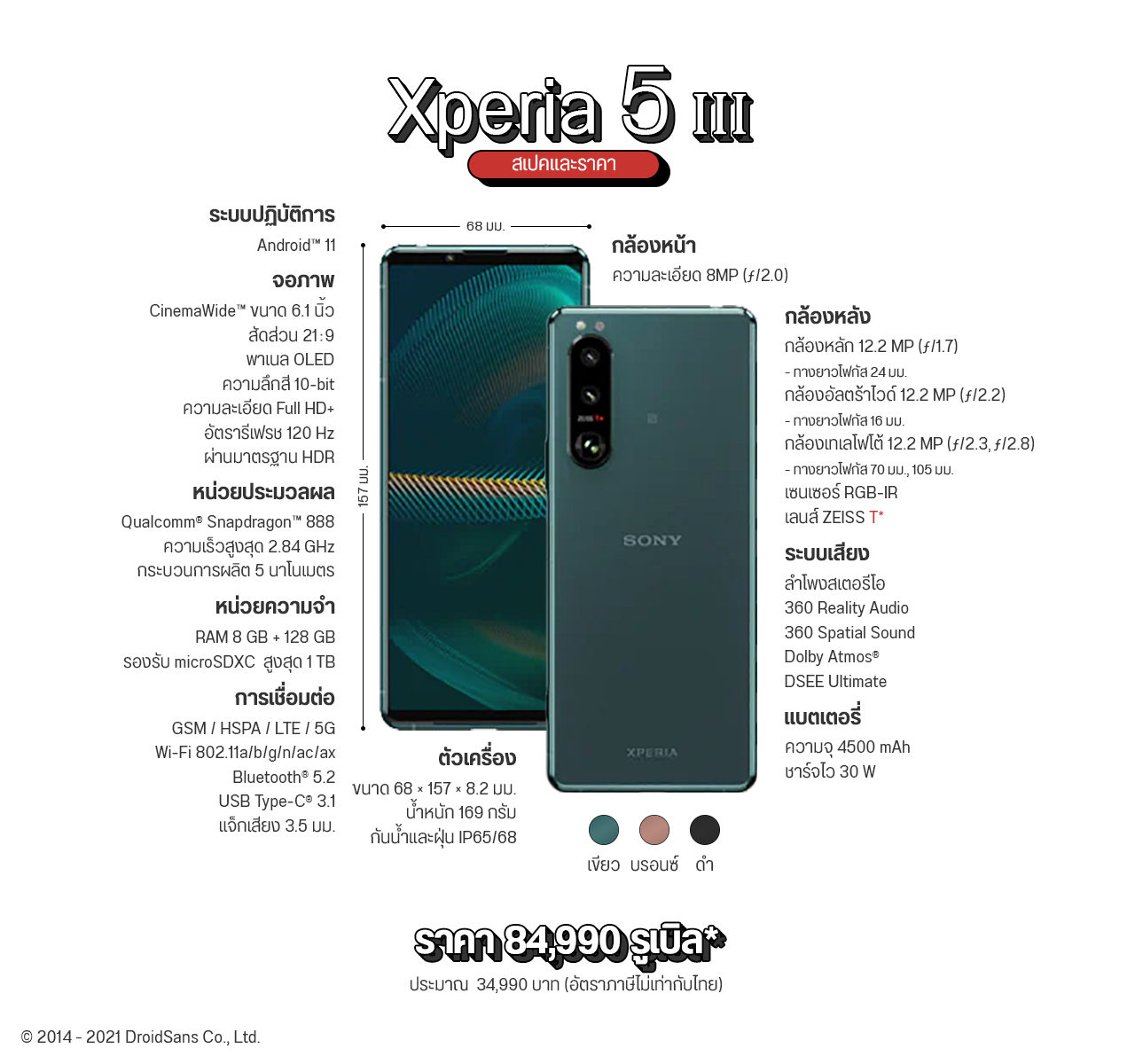ข่าวดีสำหรับชาวอารยธรรมที่กำลังรอคอยการมาถึงของสมาร์ทโฟนรุ่นใหม่ บัดนี้ Xperia 1 III และ Xperia 5 III ได้โผล่ออกมาให้เห็นกันบนเว็บไซต์โซนี่ประเทศไทยแล้ว คล้องหลังตาม Xperia 10 III เพียงไม่นาน เท่ากับว่า…มาครบทั้ง 3 รุ่นเลย รอลุ้นวางขายเร็ว ๆ นี้