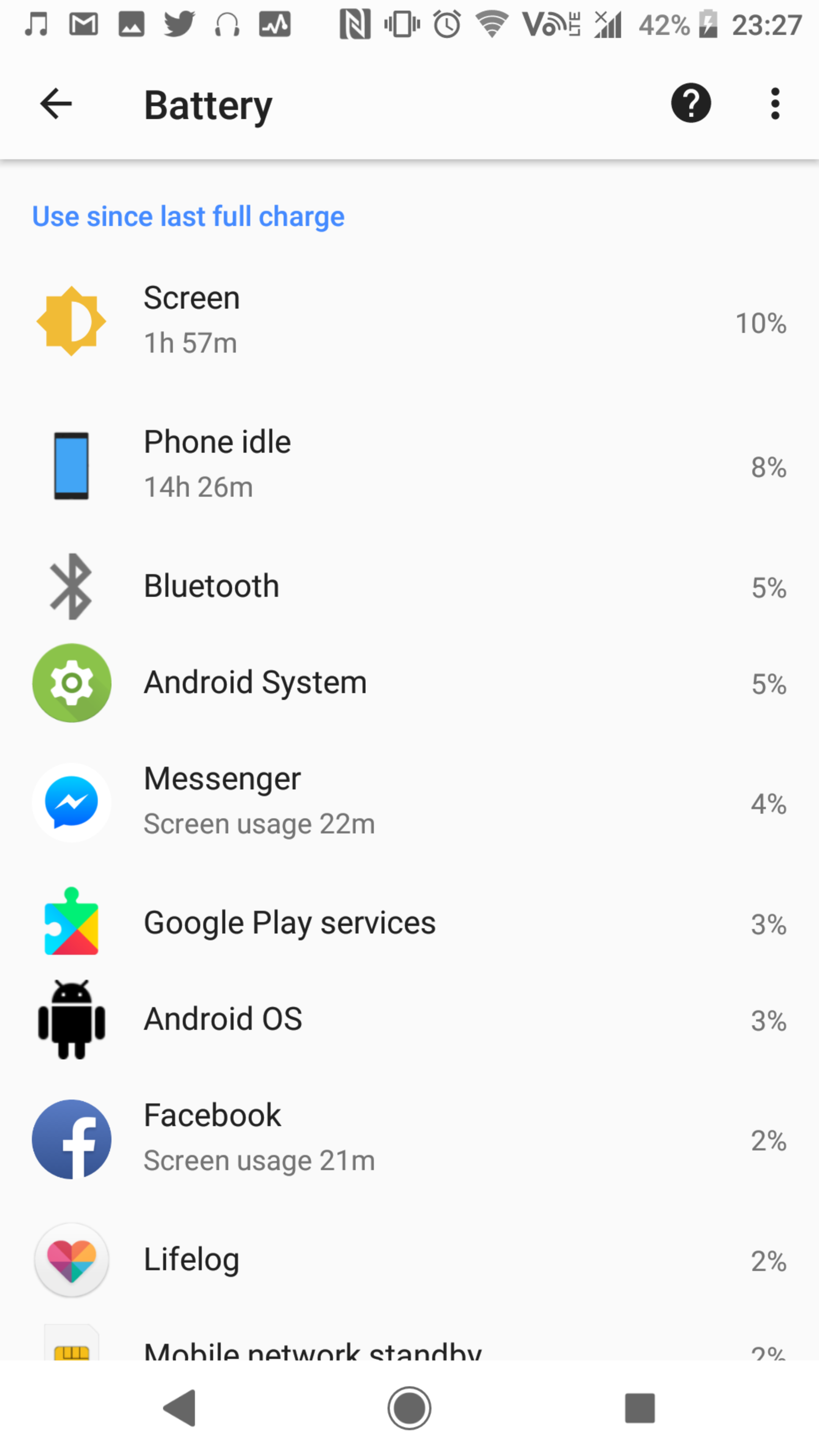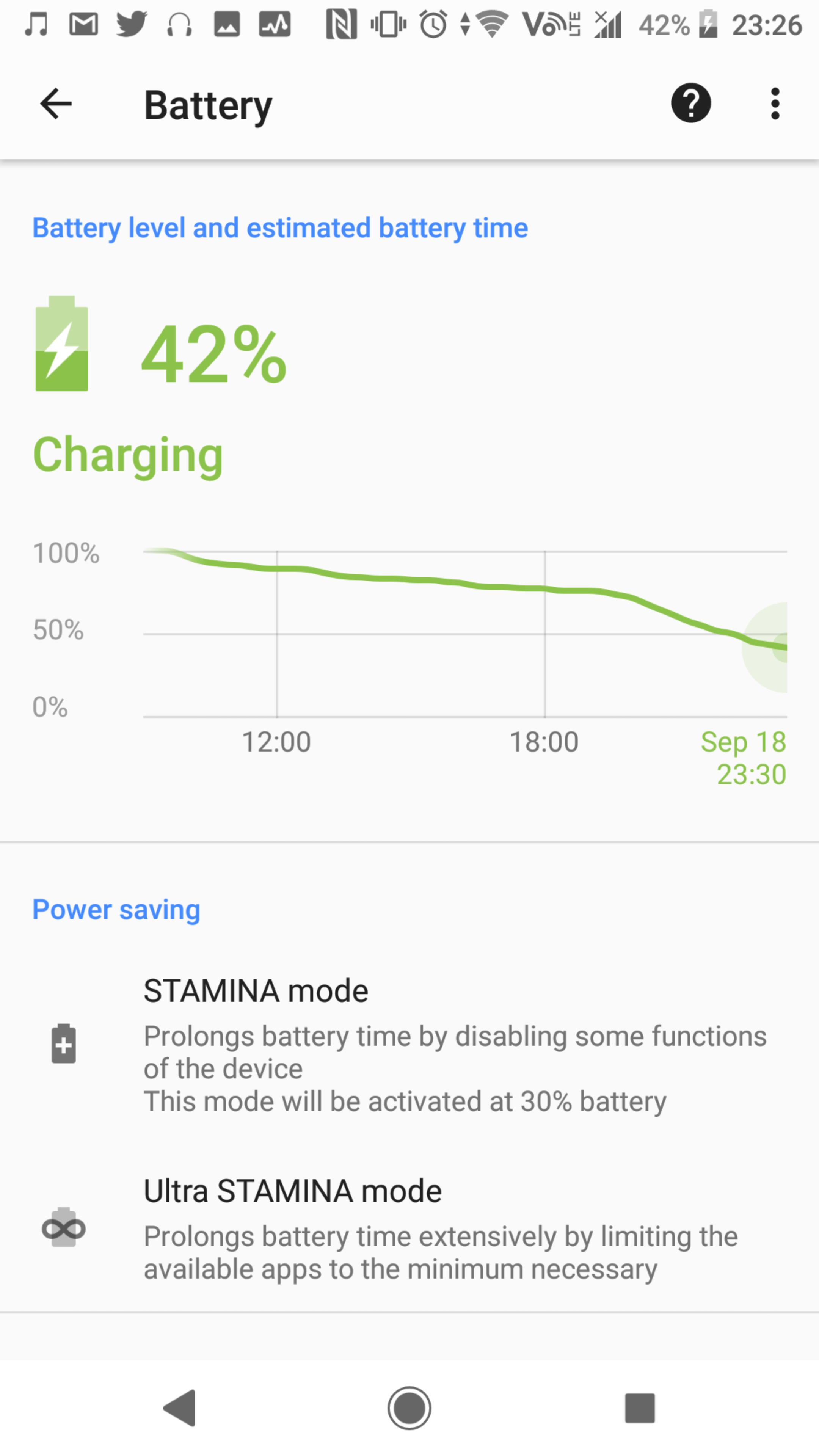 มีวันนึงที่ช่วงทำงานไม่ค่อยได้หยิบมือถือมาดู ผมสามารถใช้ Xperia XZ2 Premium ต่อเนื่องได้ถึงอีกวันนึงเต็มๆ โดยไม่ชาร์จแบตได้เลยครับ แนะนำว่าสำหรับคนใช้ Xperia น่าลองตั้งค่าพวกนี้ดูจริงๆ