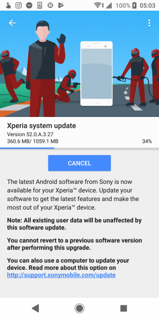 สำหรับอัพเดตใหม่นี้จะมีขนาดอยู่ที่ 1059 MB (ประมาณ 1 GB นั่นแหละ) ใครได้อัพเดตก็แนะนำให้โหลดผ่าน Wi-Fi เอานะครับจะได้ประหยัดเน็ตมือถือ โดยในอัพเดตนั้นจะเป็น Android Pie 9.0 ล่าสุดมาพร้อมกับแพทช์ความปลอดภัยประจำเดือนตุลาคม 2018 และนอกจากนี้ก็ยังนำแอปกล้องใหม่แบบใน Xperia XZ3 มาให้กับรุ่นเก่าอีกด้วย เดาว่าน่าจะมีการปรับปรุงซอฟต์แวร์การถ่ายภาพไปพอสมควร ใครได้แล้วก็ลองเปรียบเทียบดูได้ครับ