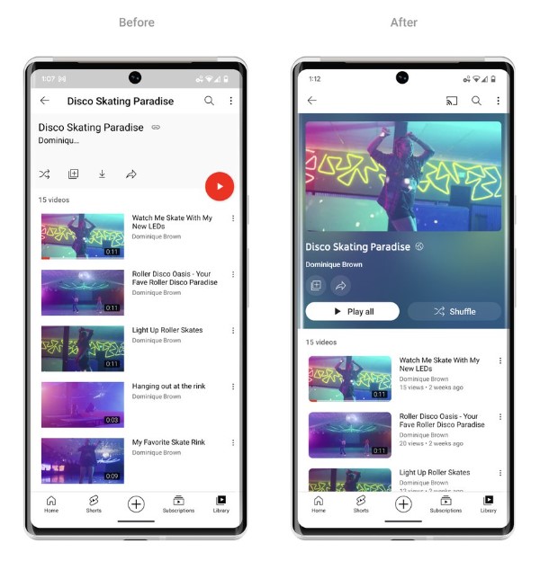 นอกจากนี้ก็ยังมีการปรับหน้า Playlist ให้มีรูปคลิปเด่นเห็นรายละเอียดได้ชัด พร้อมปรับสีพื้นหลังตามวิดีโออีกด้วย